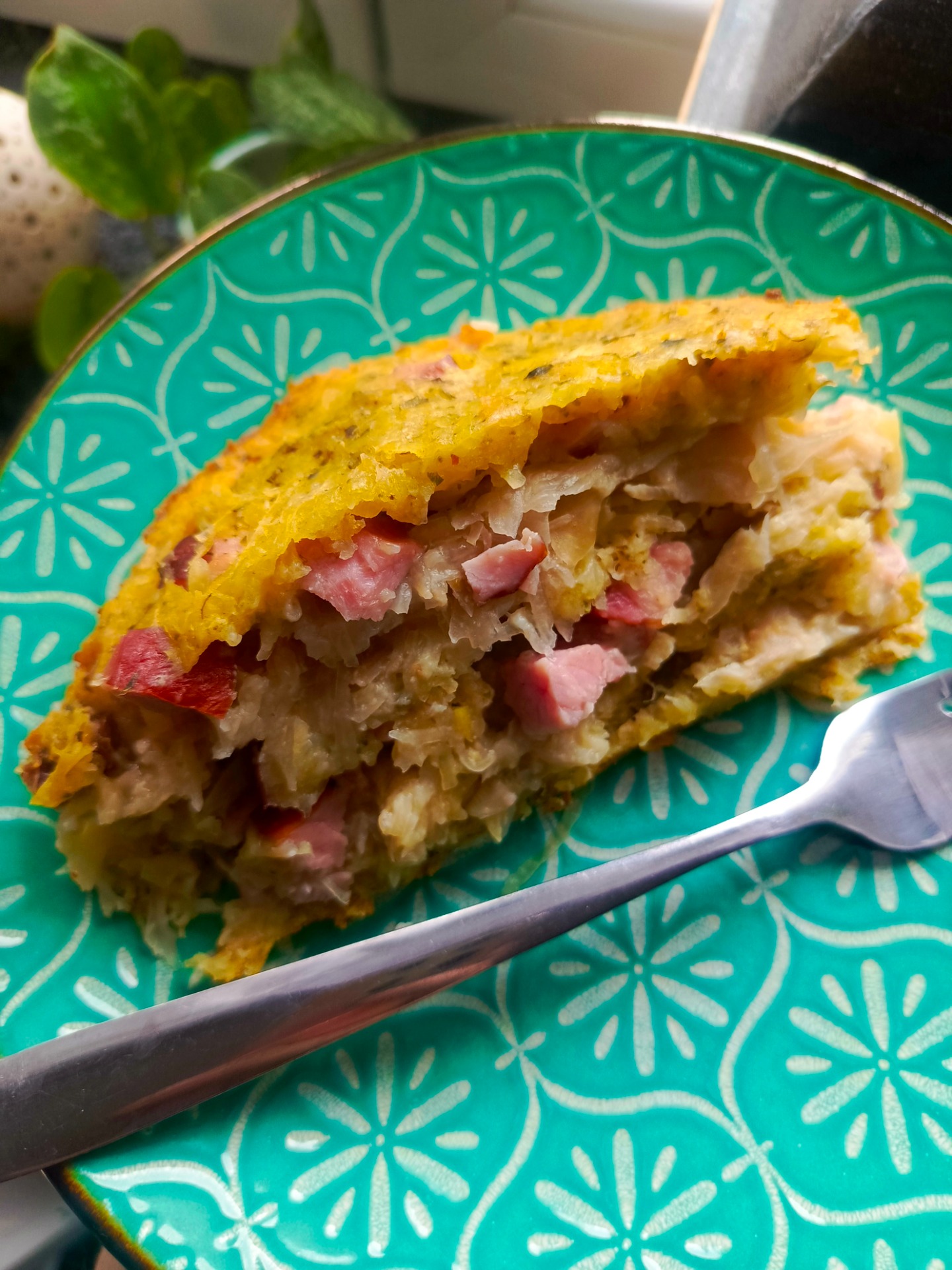 • A teď už vrstvíme, bramborové těsto rozprostřeme na dno, nandáme zelí, které rozprostřeme na brambory a opakujeme. Je na každém z vás, kolik vrstev si uděláte