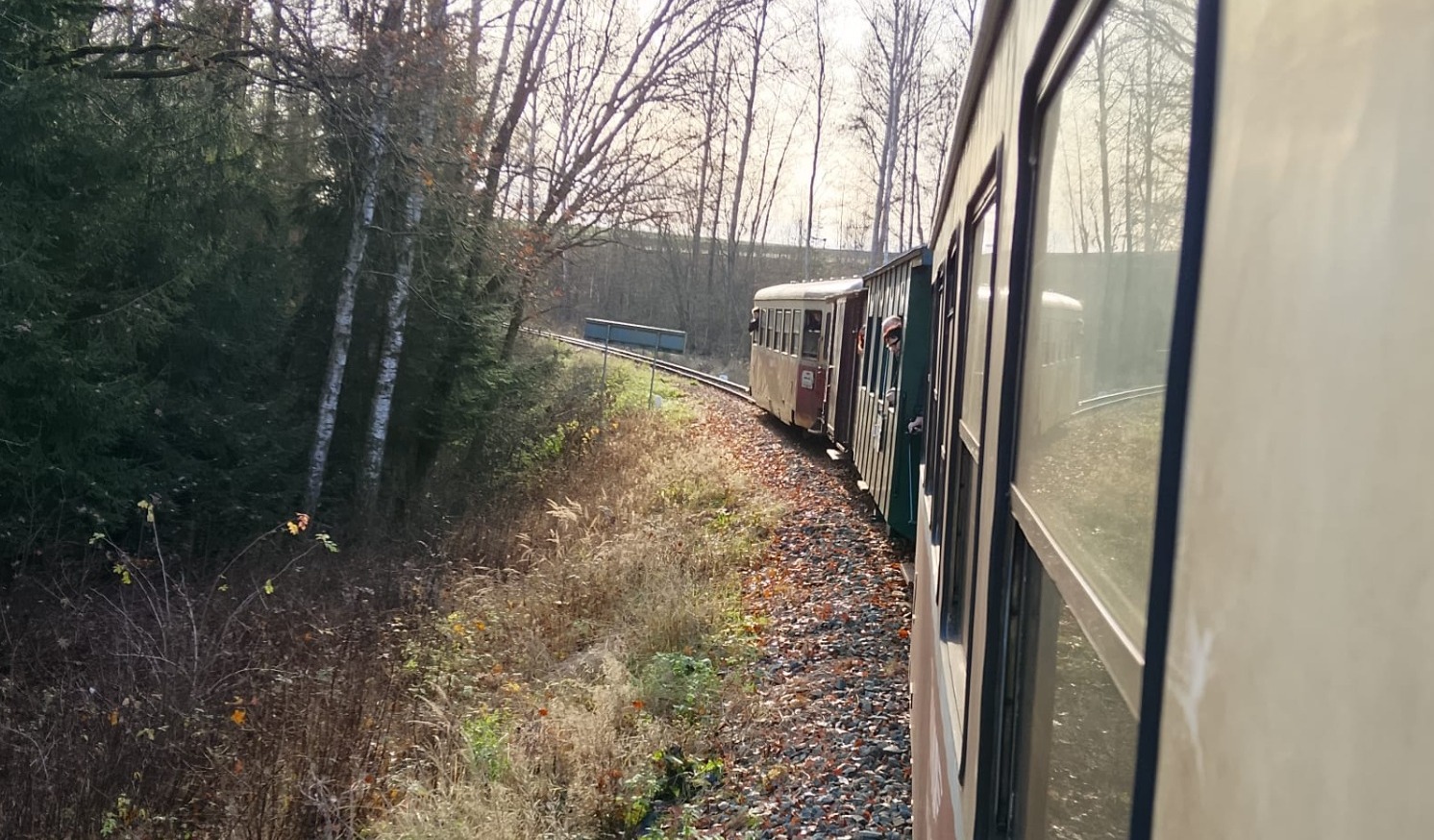 A pak je tu jeden, který stojí rozhodně za zmínku, a především pak za podporu. Jindřichohradecké místní dráhy, provozující v současné době jen mimořádné jízdy na úzkokolejné dráze. Jistě všichni slyšeli o tom, jak úzkokolejka, spojující Jihočeský kraj a Vysočinu, prochází těžkými časy, neboť kraje neplatí a nevím co všechno. Spíše se přikláním k verzi místních, že bývalý majitel peníze vyvedl a úžasná a výjimečná trať prostě dožila. Dnes, tedy v roce 2025, vlastní trať nový majitel, se kterým jsme měli čest se vidět. Obyčejný týpek v tričku, s dcerou na ramenou, který se vzdal většiny vybudované dopravní společnosti proto, aby zachránil tuhle trať. Takže srdcař. Inu nasedněme a pojďme se svézt.