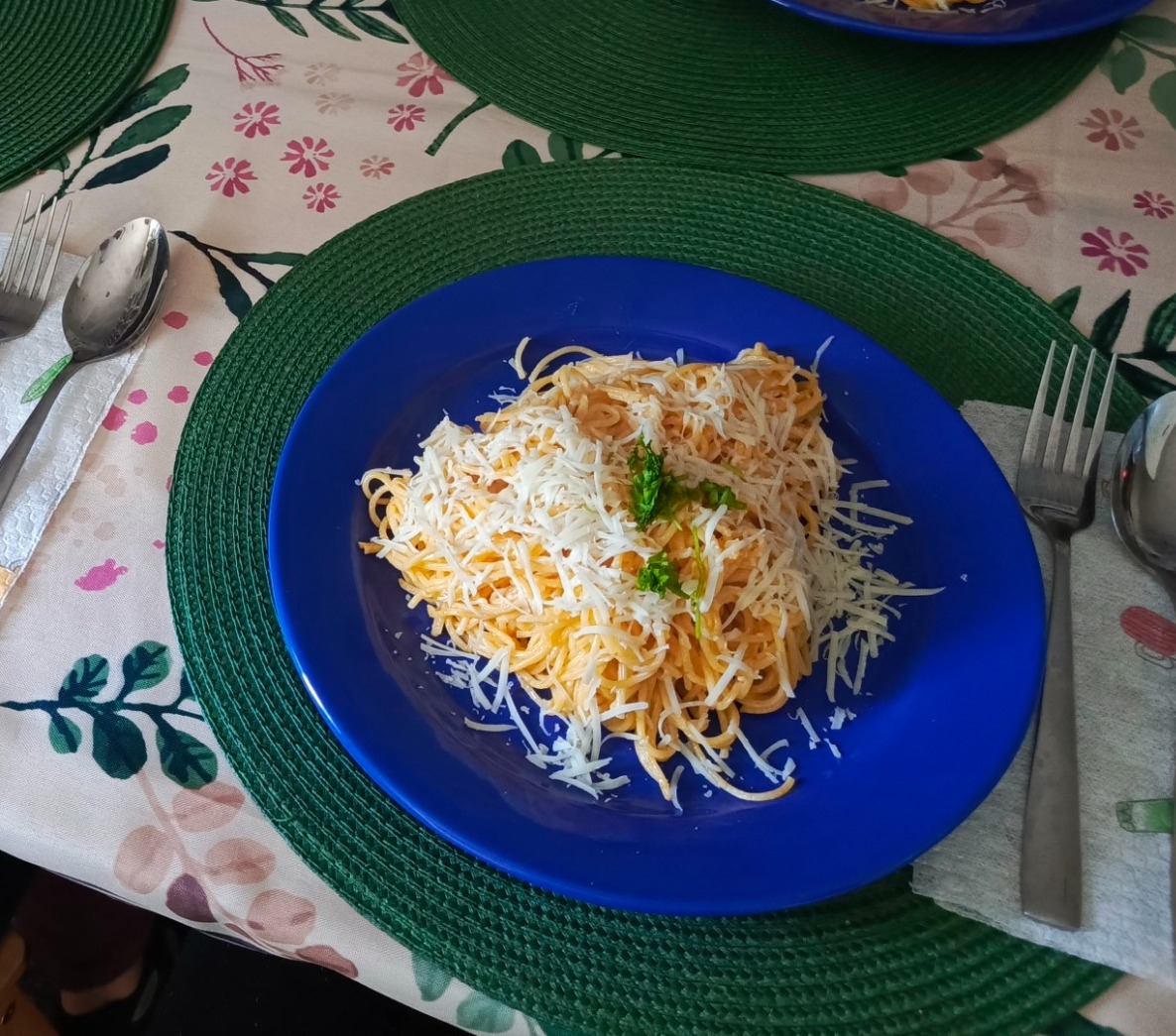 I bez masa šlo o fakt chutný oběd, budiž tedy špagetám odpuštěno. Jídlo nebylo vůbec náročné na přípravu, bylo rychlé a chutné. Dobrou chuť