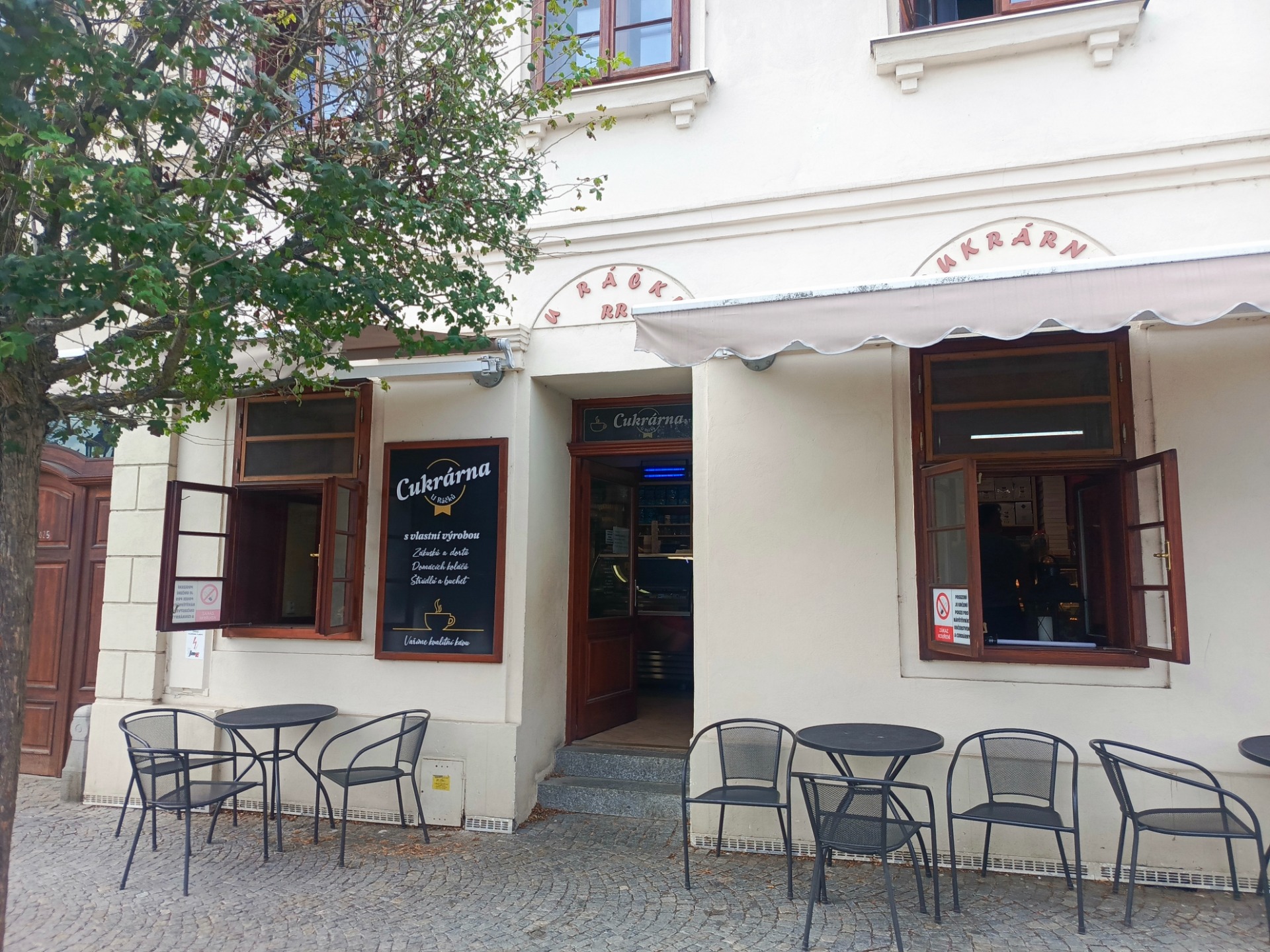 Tuto cukrárnu naleznete zhruba uprostřed malebného náměstí, mezi jehož dominanty patří kostel sv. Jana Křtitele, morový sloup, ale i nepřehlédnutelný kamenný most v její blízkosti a nad městem jakoby povznášející se překrásný zámek. Malebná cukrárna a kavárna je provozována jako rodinný podnik a nabízí přehršel domácích zákusků za vskutku lidové ceny. Vyzkoušeli jsme ořechový a banánový dort, malinový řez a kokosíno. Chuťově opravdu skvělé, a ne příliš přeslazené zákusky jsme zapili lahvovým džusem, neboť zde domácí limonáda v nabídce není. Pro milovníky kávy a čaje se zde ovšem nabízí pestrá škála produktů k uspokojení svých chutí. Ceny zákusků, čerstvost a skvělá chuť budou patrně stát za zvýšeným zájmem zákazníků, kteří se sem v pracovní dny i o volnu scházejí za účelem nákupu oněch dobrot.