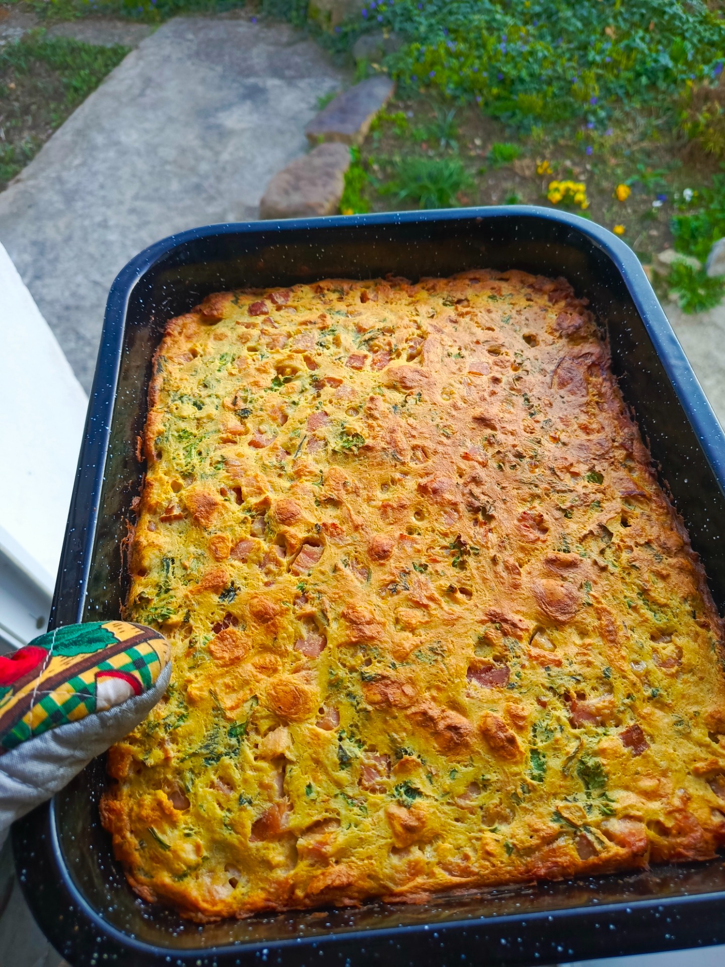 • Dáme do formy směs a pečeme cca 25 minut při 160 °C, poté 5 minut na 200 °C pro zlatavou barvu